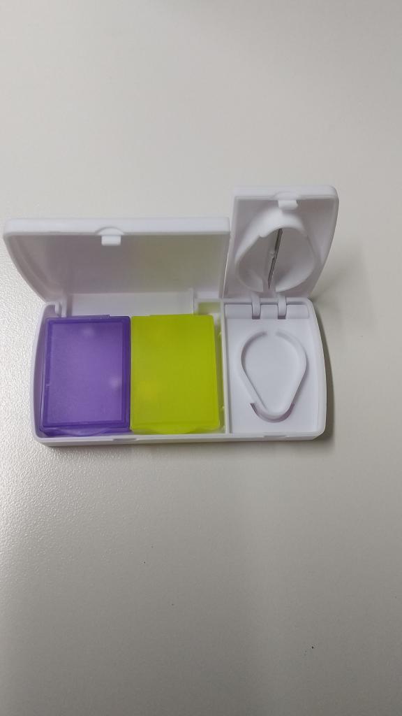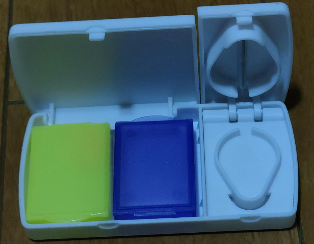 錠剤をセット&カットしやすく助かっています。カットしたものを隣のボックスに入れ持ち歩けるので出かけた先でも重宝しています(^^)