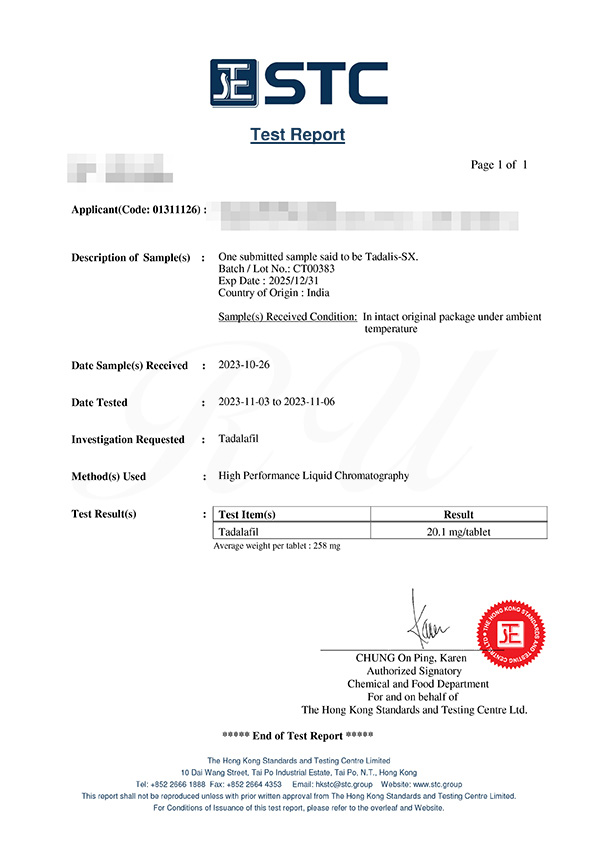 当方タダリスは2,3年前から時々服用して居り効果は申し分の無い逸品でございます。※服用して30分程すると息子がムクムクしだし軽く手コキしただけでもうビンビンカチンコチン!青スジ一杯立ててドクドク脈を打って完全勃起状態が永遠と続きます!※この商品の最大の魅力は射精の瞬間~射精中~射精後と永遠と続く究極の快楽です!それとサックを着用してHすると射精した精子の量がよく分かりますが私は服用して無い時の2~3倍の射精量です!※皆様にも是非お薦めします!