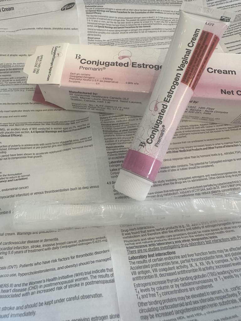Wyeth社のプレマリン膣クリームは、更年期による膣内や膣周辺の変化や、それらの変化によって引き起こされる性交痛の緩和に使用されます。