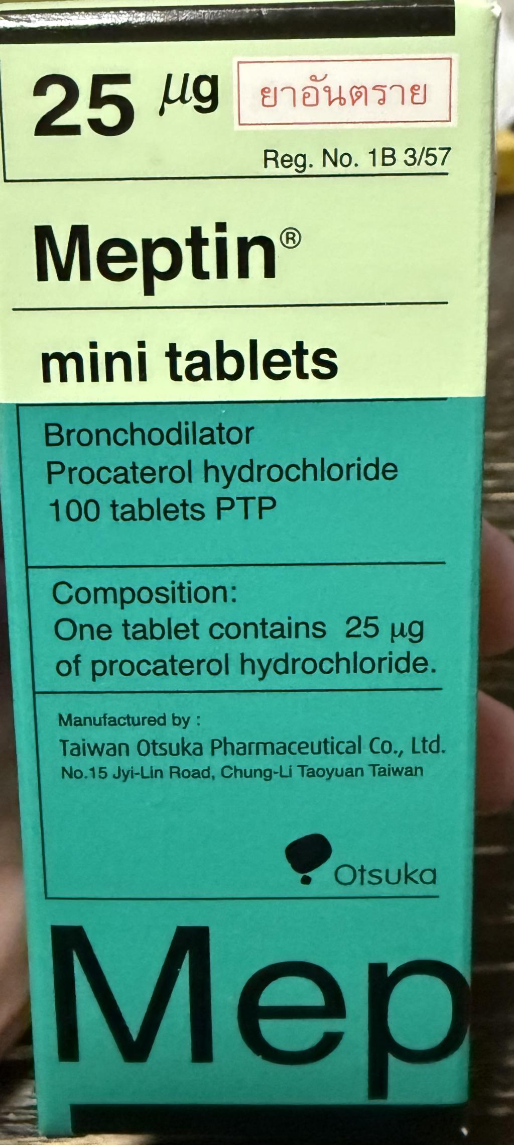 これに対しメプチン(Meptin)の有効成分であるプロカテロール塩酸塩が、気管支を拡張させる作用があるので、気道を拡げて、気管支喘息の発作を抑え、呼吸困難などの症状を軽くします。