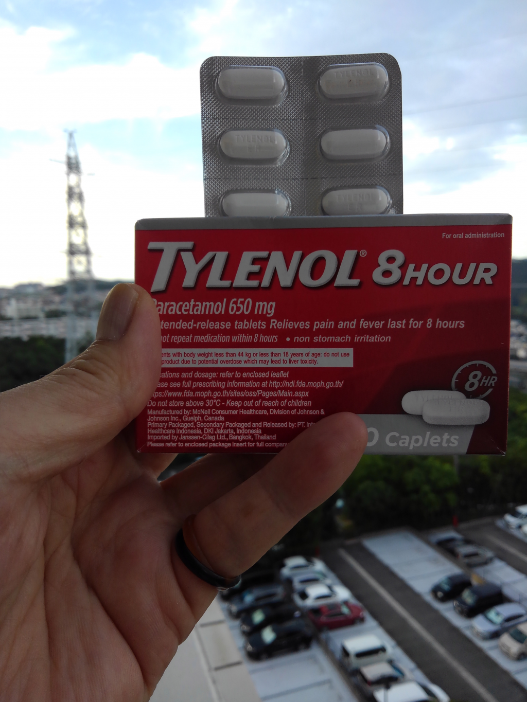 薬剤師ですが自分で自由に薬を処方(処方は医師の権利)することは出来ないため、日頃からオオサカ堂には大変お世話になっています。中でももう何度もリピートしているのがこちらのタイレノール8hr。処方薬のカロナールや市販薬のタイレノールAと同じアセトアミノフェン(海外ではパラセタモールと呼ばれている)が有効成分の解熱鎮痛剤です。