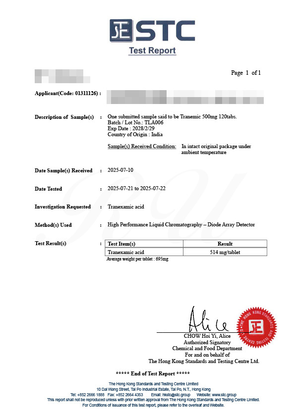 肝斑が気になり購入。500mg錠も合わせて購入。届くまでに少し時間はかかりましたが梱包も丁寧で問題ありませんでした。続けたいと思います。