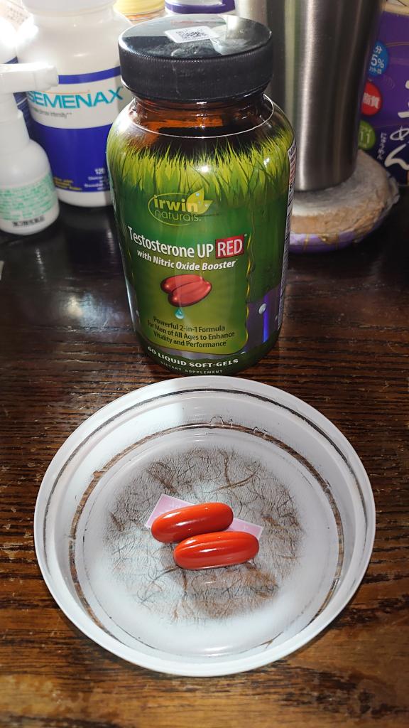 テストステロンUPを飲んでいて無くなったので同時購入のレッドに切り替えて飲み始めました。現時点で下の方の著変はありませんが、鬱ぎ込みがちだった気持ちがずいぶん改善し良かったです。朝夕で1錠づつ飲んでも ひと瓶60錠なんで直ぐ無くなります。続けようと思いますが 出来ればもう少しコスパ良いとありがたいんですが・・
