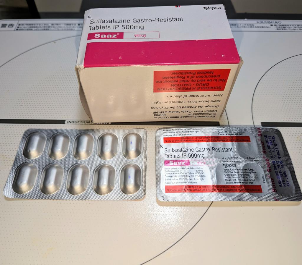 日本においてはアザルフィジンEN錠と同等の医薬品で、日本では腸溶錠の適応症は関節リウマチのみですが、他国においては潰瘍性大腸炎の治療にも使用されます。