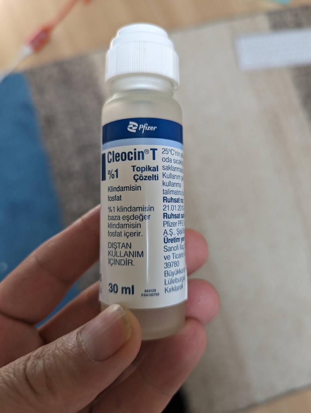 いつものクレオシンTです。髭剃りの後に塗るとトラブルが出来ないので愛用しています。が、正直なところダラシンTみたいにゲルタイプが欲しいです、、、気のせいかゲルタイプが刺激がないような、、、、