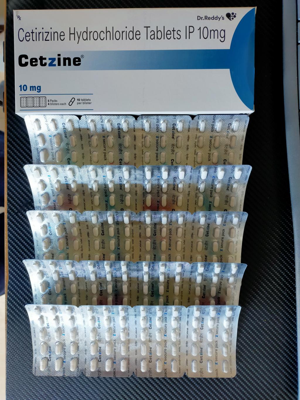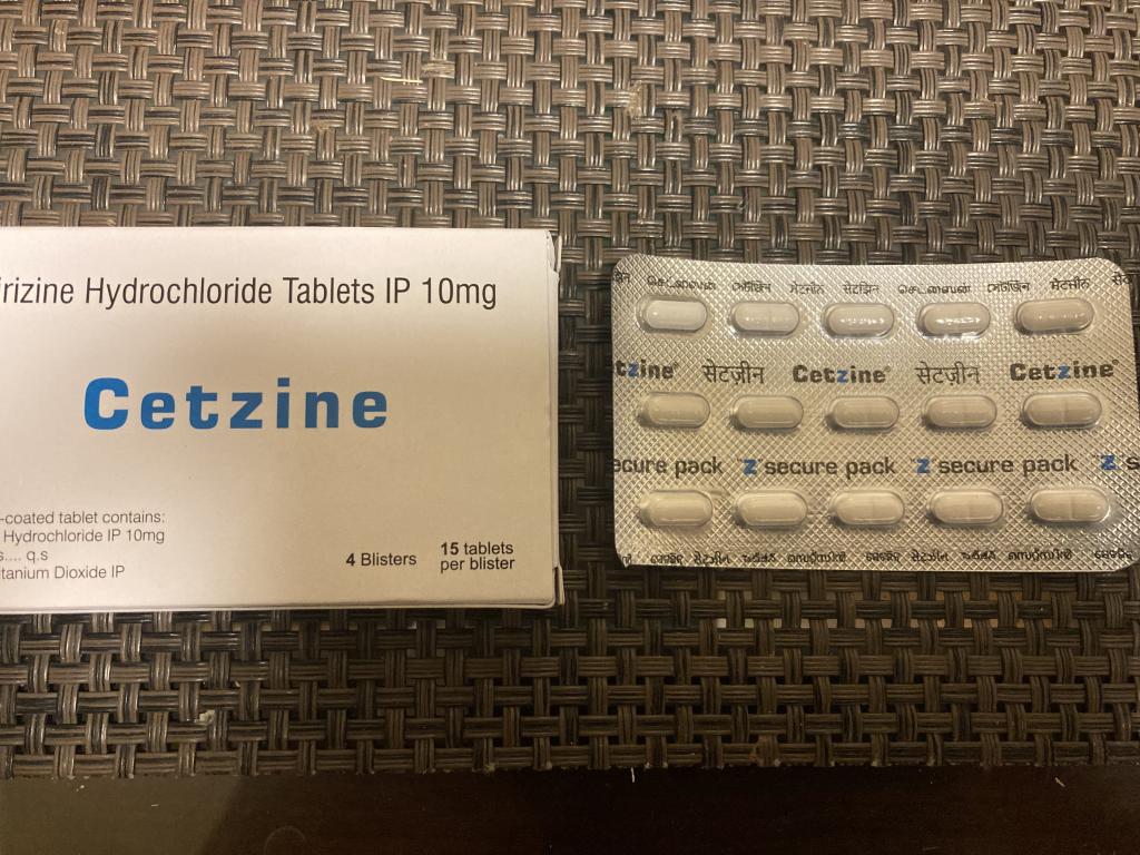1フィルムコーティング錠中:セチリジン塩酸塩 インド薬局方 10mg、添加剤 適量