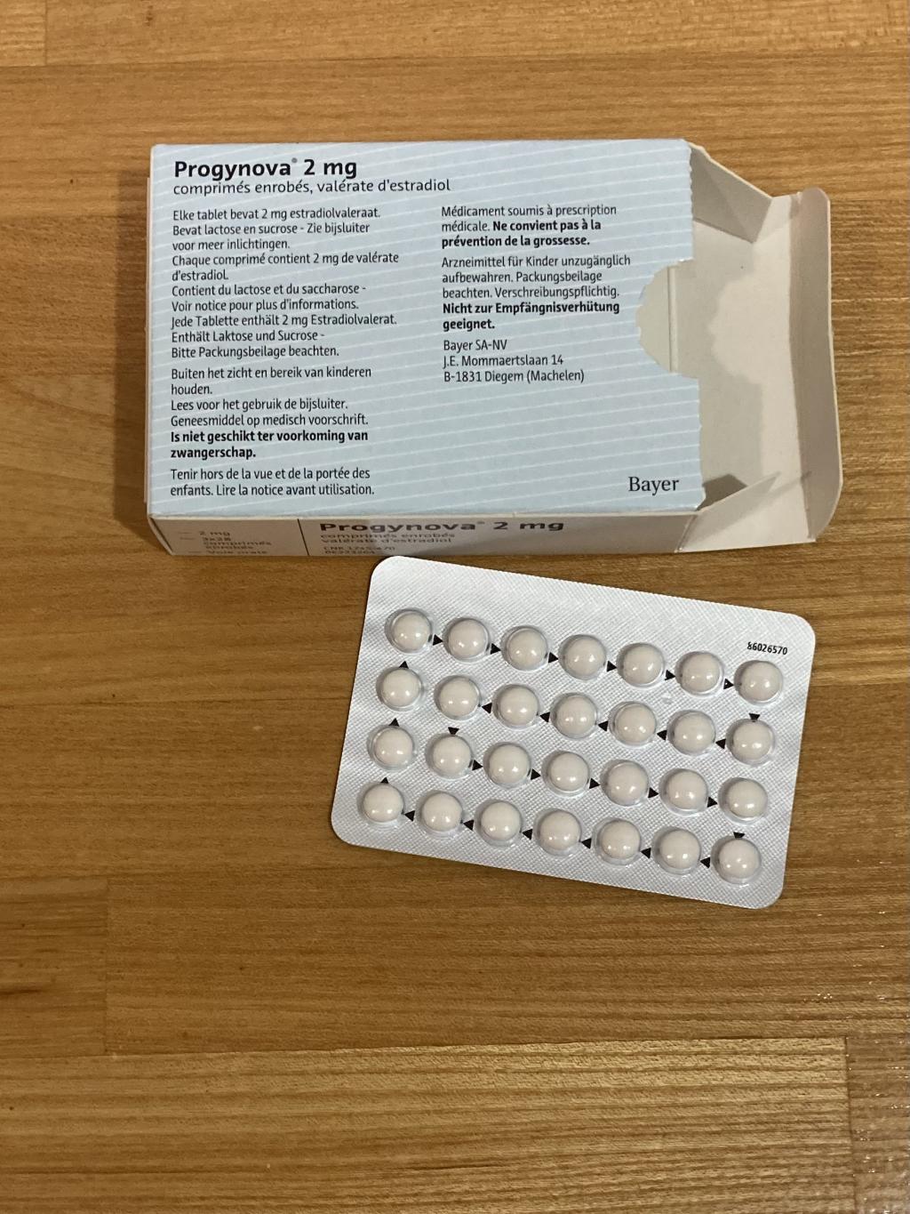 女性ホルモンはずっとプロギノバを使用しています。最初は1箱56錠を3箱まとめ買いしていましたが、最近価格が高騰しこちらの方がわずかに安く量も多いので今はこちらを使っています。中身は変わらず安心安全のバイエル社の正規品です。毎日2錠を朝と晩に分けて服用しています。天然型なので副作用もなく優しいです。効果は安定して高いです。アンドロキュアなどと併用しています。