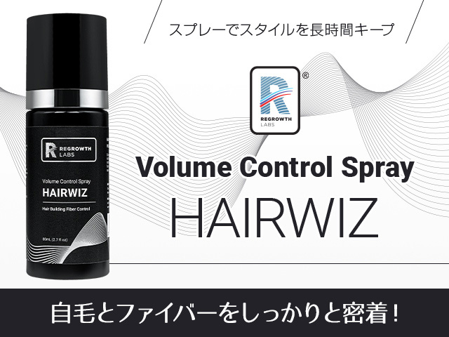 ヘアウィズ・ボリュームコントロールスプレーは、ヘアウィズ・ヘアビルディングファイバーの効果を最大限に発揮できるように作られた整髪用スプレーです。併用することで、ケラチンファイバーをしっかりと定着させ、髪を太く濃く見せると同時に理想のスタイルを長時間キープできます。