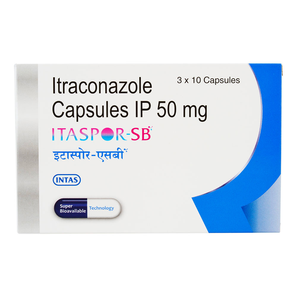 アイタスポルSB(Itaspor-SB)は、主に呼吸器真菌症などの体の内部の真菌症(深在性真菌症)に用いる薬です。また深在性皮膚真菌症(スポロトリコーシス、クロモミコーシス)、表在性皮膚真菌症(爪白癬以外の白癬、カンジダ症、癜風やマラセチア毛包炎)、爪白癬のパルス療法などにも用いられます。