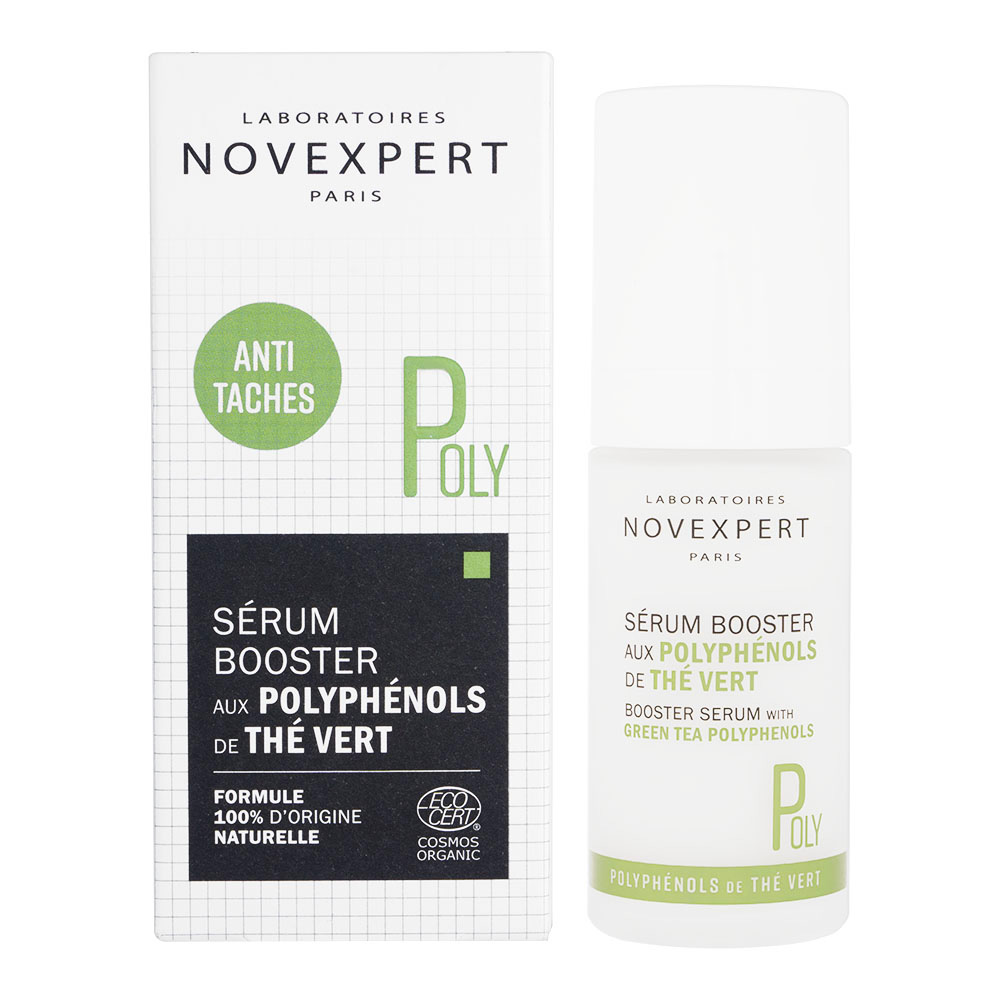 NOVEXPERT(ノヴェクスペール)のブースターセラムwithグリーンティーポリフェノールは、100%医師処方のドクターズコスメです。100%天然由来成分で、オーガニック原料も使用しています。すべての肌タイプに適しています。フランス製です。