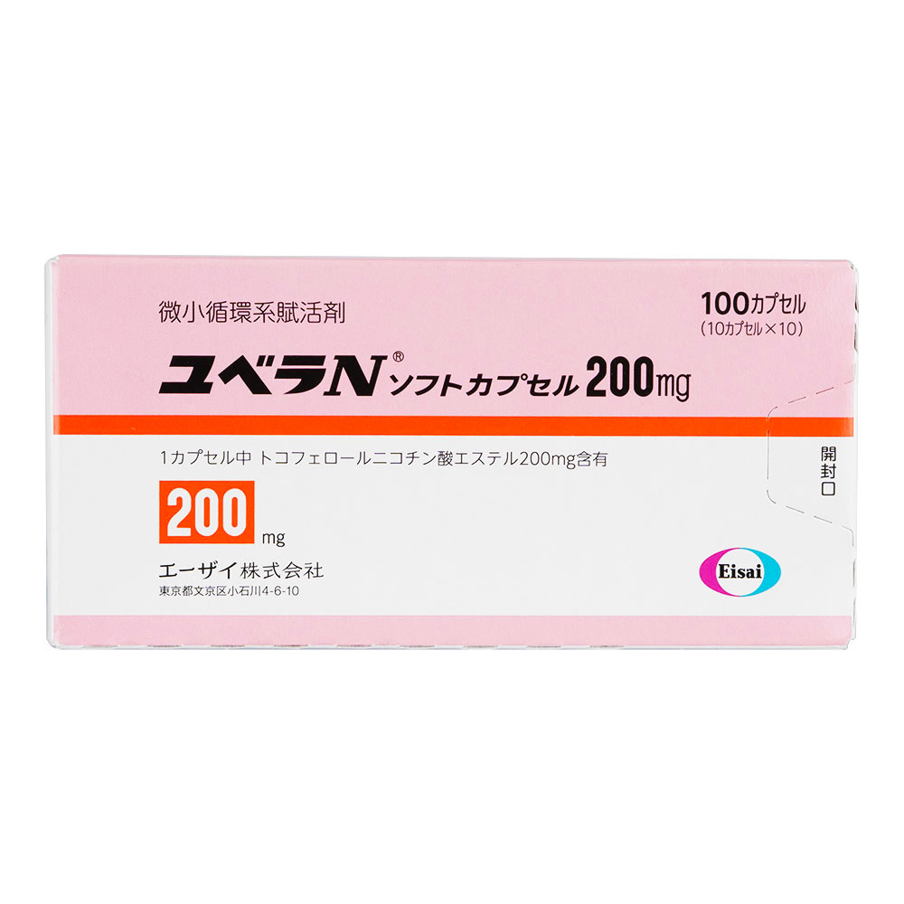 ユベラNカプセルは、トコフェロールニコチン酸エステルを有効成分として含有した、微小循環系賦活剤として知られるビタミンE誘導体です。トコフェロールニコチン酸エステルは、ビタミンEとニコチン酸とを結合させた誘導体で、両者それぞれの生理作用を安定的・持続的に発揮するビタミンE製剤として、日本で長く使用されています。