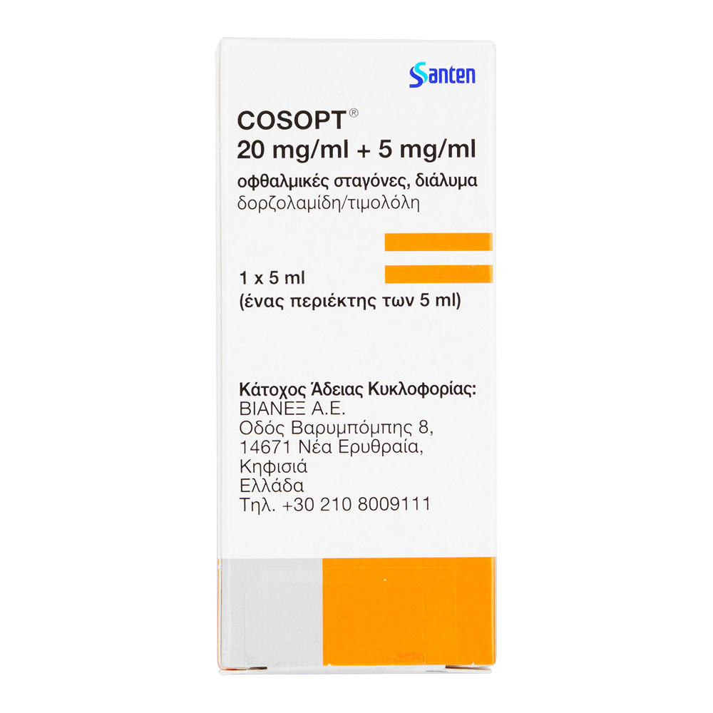1ml Contains: Dorzolamide 20mg and Timolol 5mg, Benzalkonium Chloride, Hydroxyethylcellulose, Mannitol, Sodium Citrate, Sodium Hydroxide, Water for Injections.