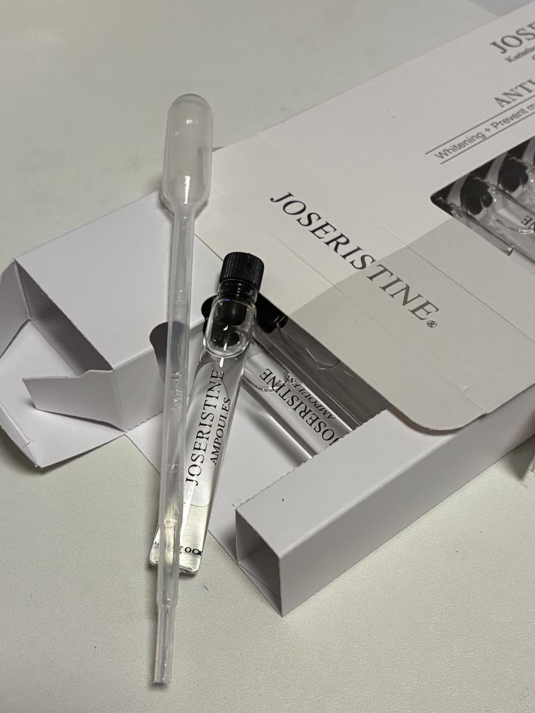 ガラス瓶のアンプルタイプの頃は使い方がピンとこず、今のスポイトで使用になっても、どんなスポイトなのかとか全くわからず…。写真撮りました。長めの細いプラ製で、箱の上の空間に入っていました。