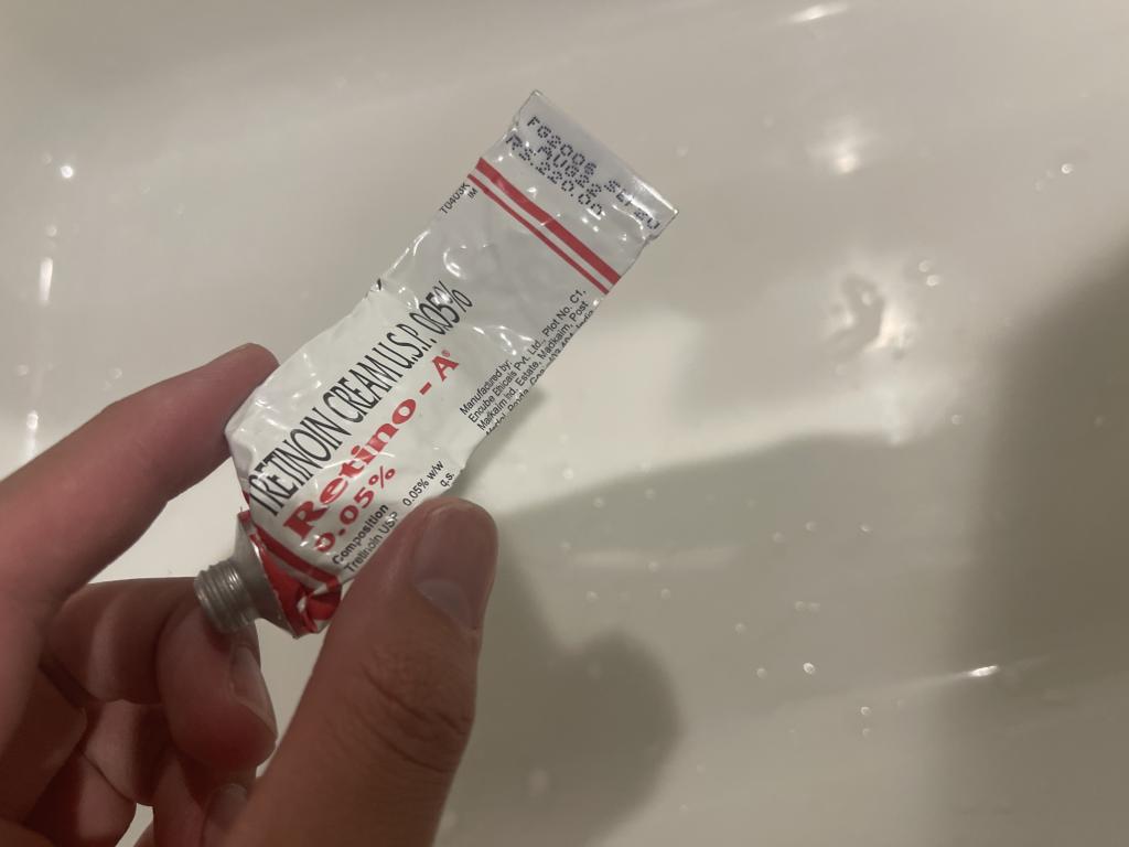 初トレチノインでしたので、最初に塗ったときは恐る恐る少量を付けました。