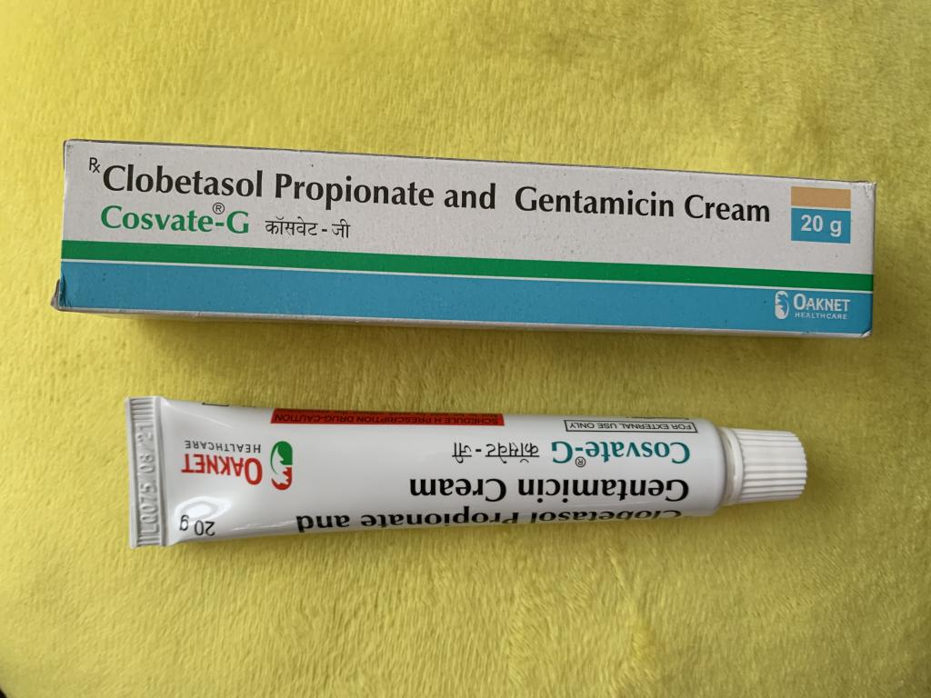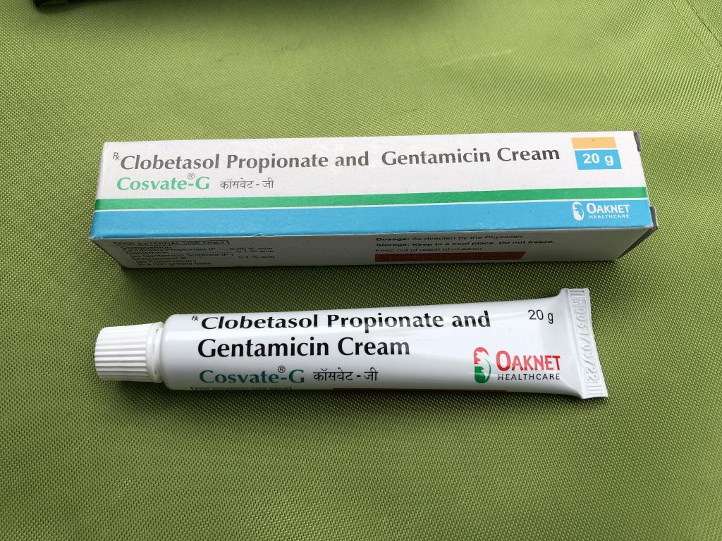 外用副腎皮質ホルモン剤はハズレが多く、いつもは、無難にタイ製のベトネベートを買ってましたが、久しぶりに業者で買おうとしたら、儲け主義と円安で、15gチューブ2本セット(30g)の価額が900円も高くなっていた。以前は15gチューブ2本1800円位で今は2700円位。ちなみに業者の仕入れ値は知らないけど、現地のドラッグストアで買えば15gチューブが370円位、100gチューブが1650円位で買える。15g1本 業者1350円 現地370円 ボリ過ぎだろ。ということで、 コスベートGクリームを買ってみました。以前、業者で買ったアラブ系のバッタ物の事があったので、とても心配でしたが、使ってみたら普通のステロイド剤で安心しました。効能も表示どおりストロングでした。普通 普通 普通 普通と言う意味で星4つ
