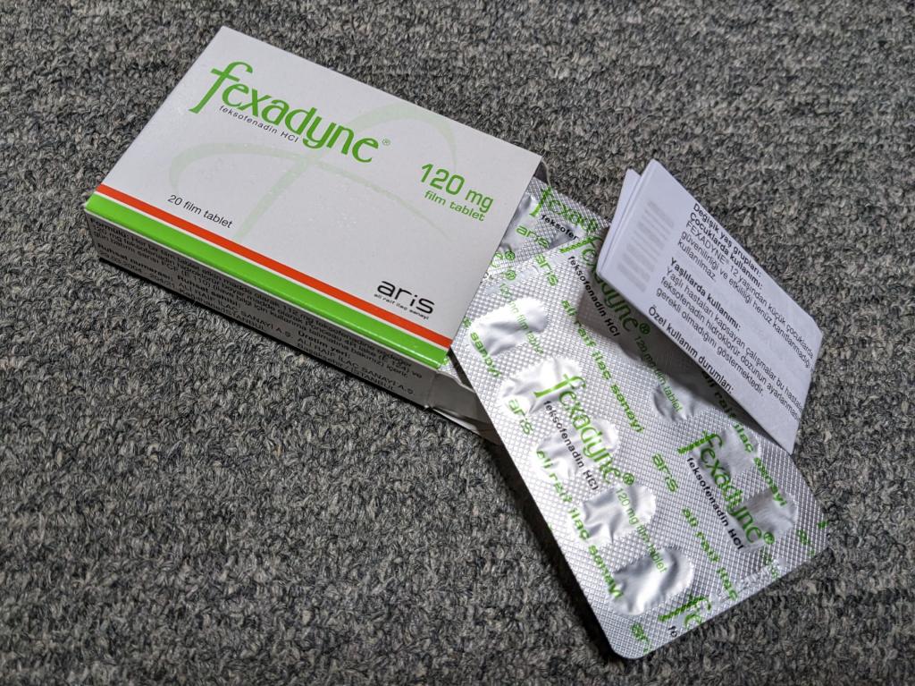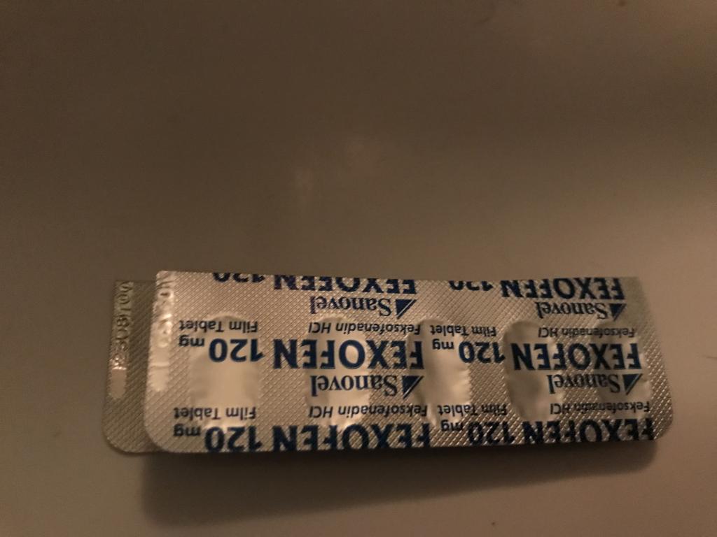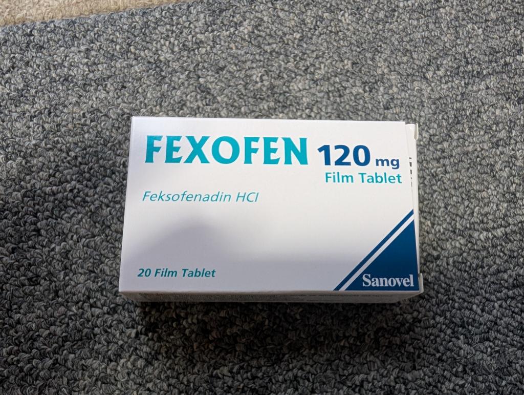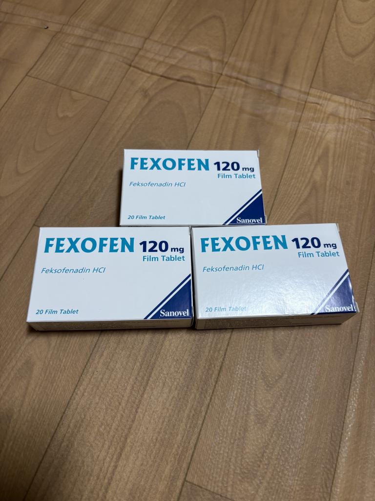 アレグラジェネリックのFEXOFEN120mgですね。ピルカッターで半分に切って使いますが、180mgを3等分する方法も編み出したので、コスパ重視なら180mgですが、半分の方が切りやすいので好みで。