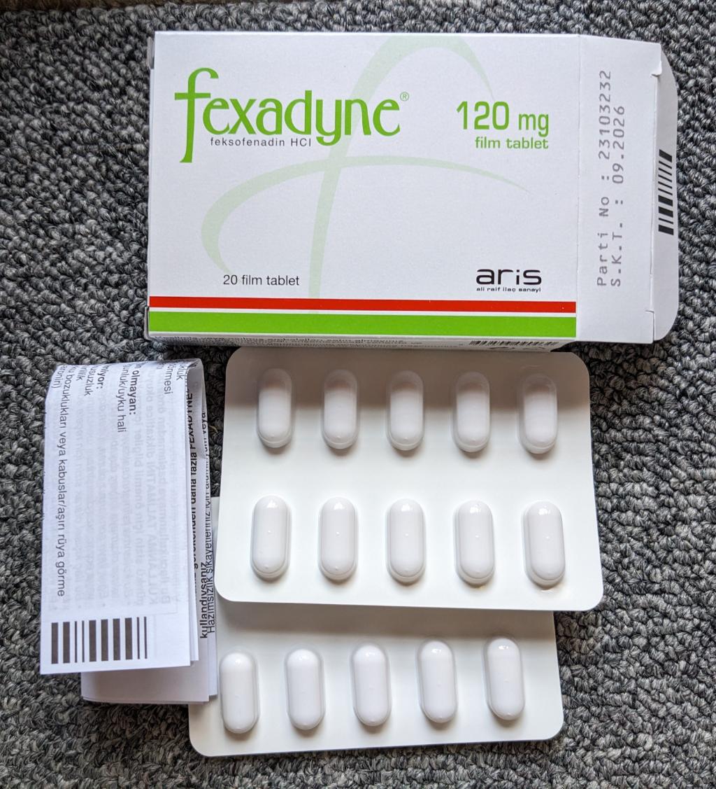 昨年この商品を注文したら"fexadyne120mg"ではなく、同等品の"FEXOFEN120mg"が届きました。オオサカ堂さんに確認したら効果は同じと言われ、普通に服用していました。