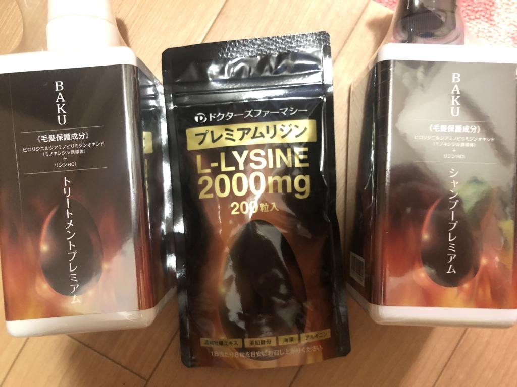 [Doctors pharmacy]ドクターズファーマシー BAKU シャンプープレミアム1本+トリートメントプレミアム1本+プレミアムリジン200粒1袋