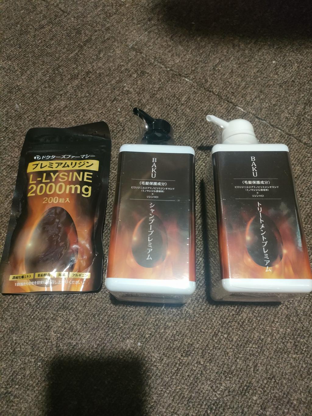 ![[Doctors pharmacy]ドクターズファーマシー BAKU シャンプープレミアム1本+トリートメントプレミアム1本+プレミアムリジン200粒1袋](https://os.r1c.co/img/p/s/017290_baku_lysine_set.jpg)