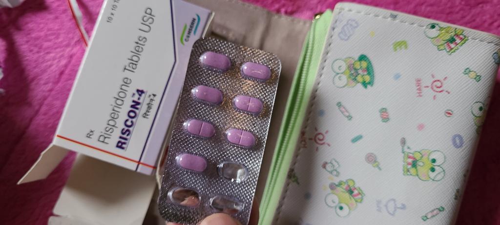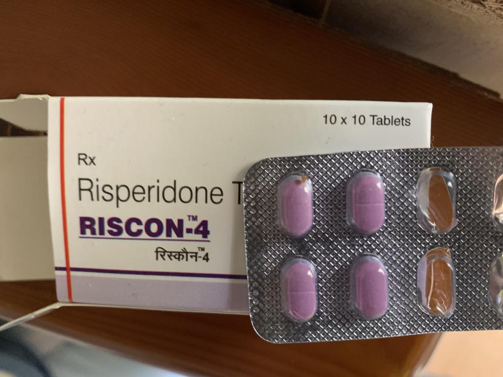 リスペリドンジェネリックです。通常初期容量が2mgから始めるので、倍となります。鎮静効果強い。私は半分に割ってから始めました。でも通常維持容量は6mgです。