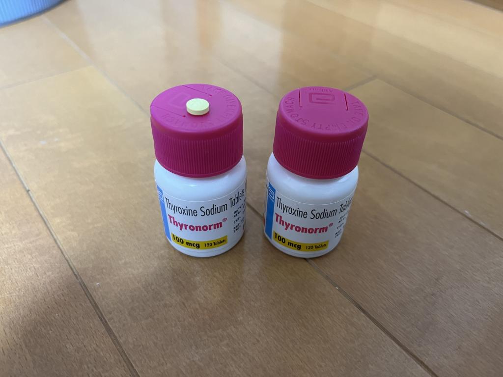 50mgから始めて、血液検査に行き数値を確認するとTSHがまだ少し高かったので、100mgへ移行しました。