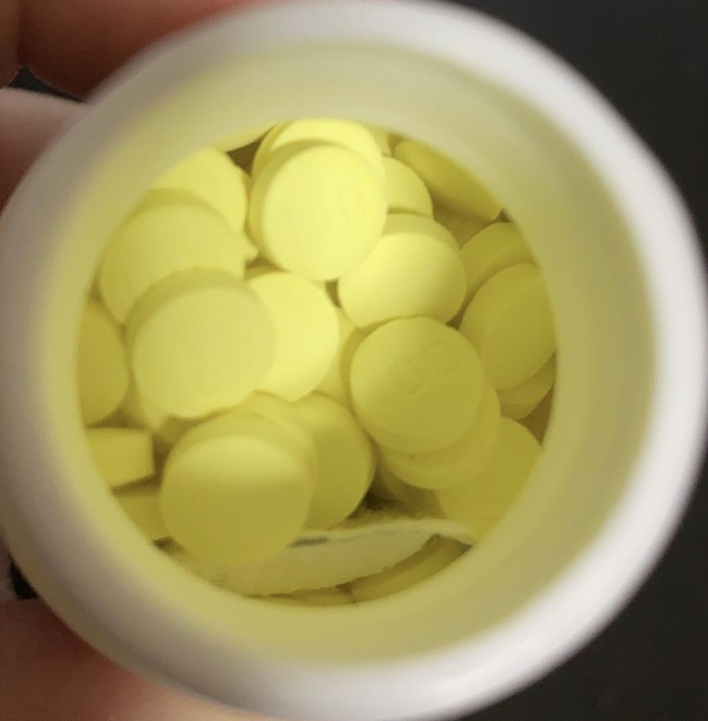 悪い点…錠剤の表に「100」のみ、裏は何も刻印が無い。蛍光イエローみたいな色なので、識別コードが彫って無くても区別はつくかも?あと、真ん中に線が無いので半分に出来ない。