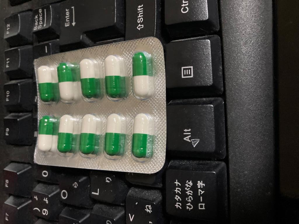 そのあと、緑のカプセルをまた元に戻してはめ込み、次にはそれをそのまま飲みます。