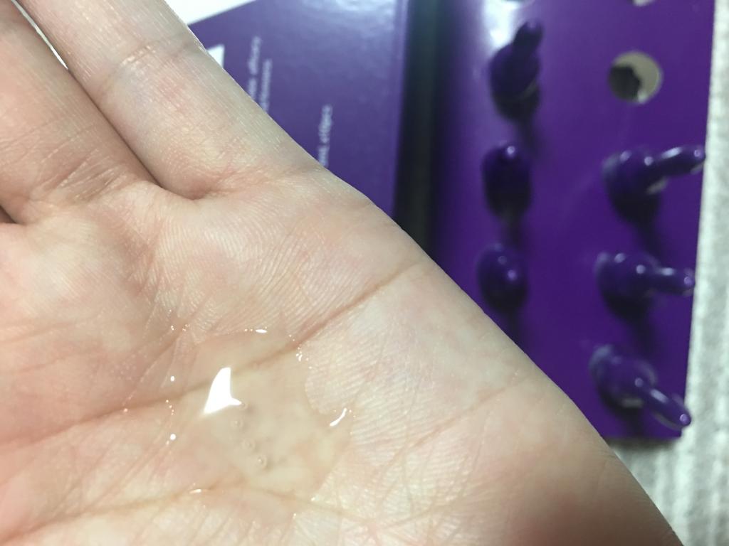 取り出した美容液は、よくあるヒアルロン酸美容液といった感じで水ノリのような質感です。