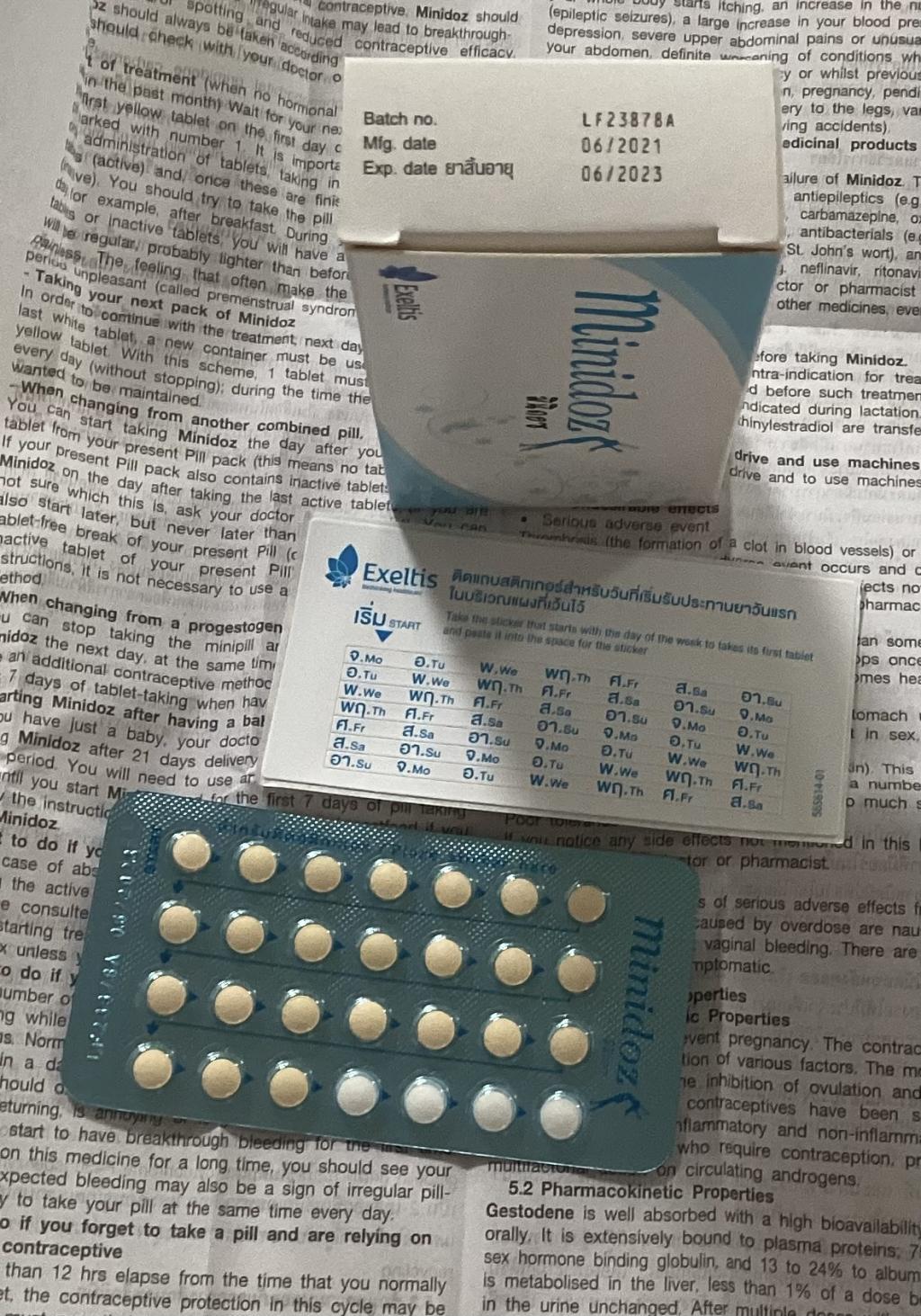 卵胞ホルモンが入っていないミニピルも数種類試しましたが、出血が長く続いたり、逆に出血がずっとなかったりして私には合いませんでした。ミニドズは休薬中のみ出血があります。出血時の痛みも少なくて楽です。