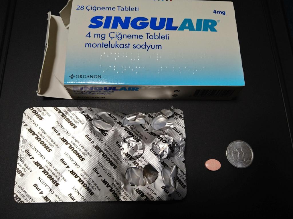 寝る前に4mgを2錠飲んでいます。風邪をひくと咳喘息の状態になり吸入ステロイドなどで治療するのですがシングレアを併用すると咳が止まりました。常備薬にします。