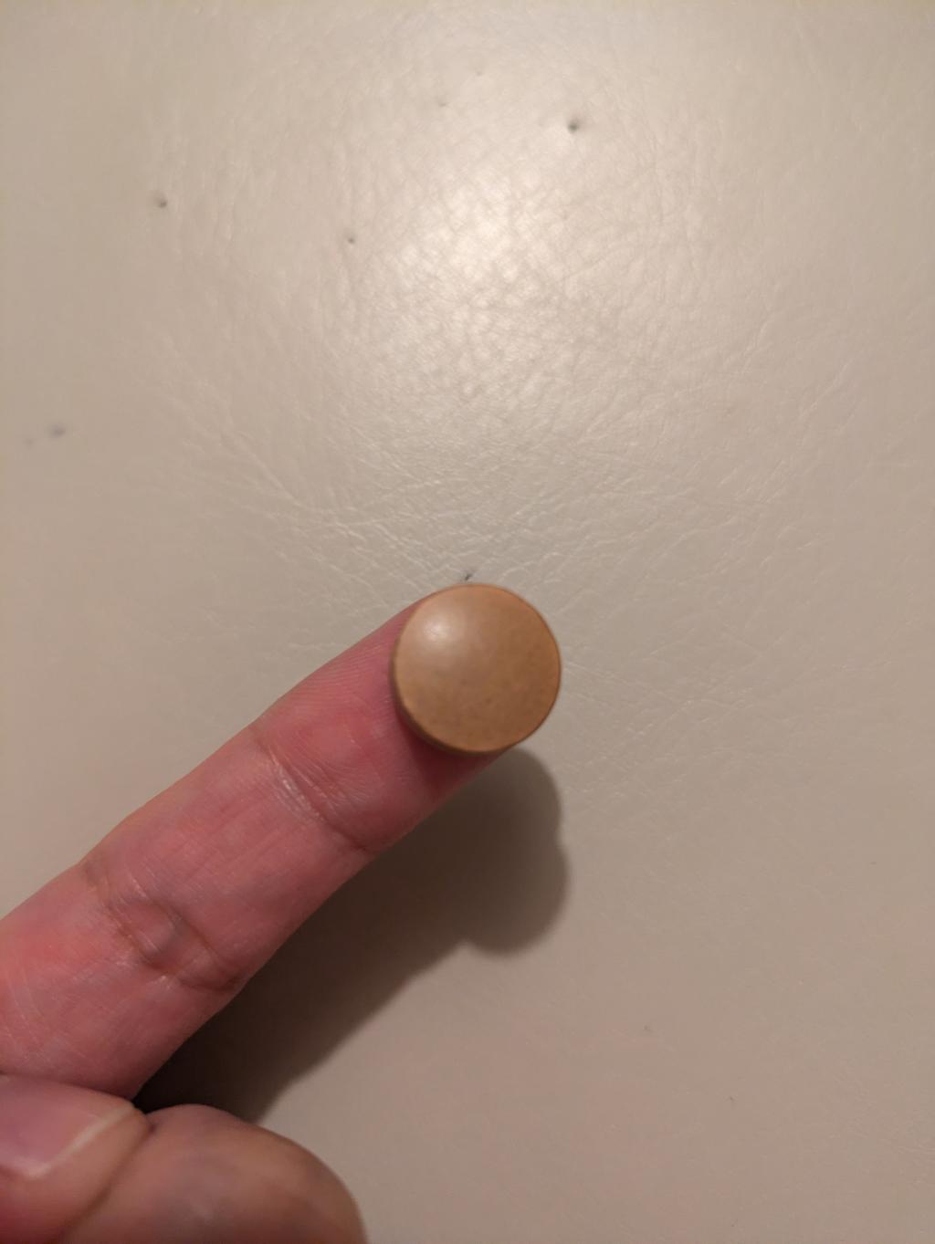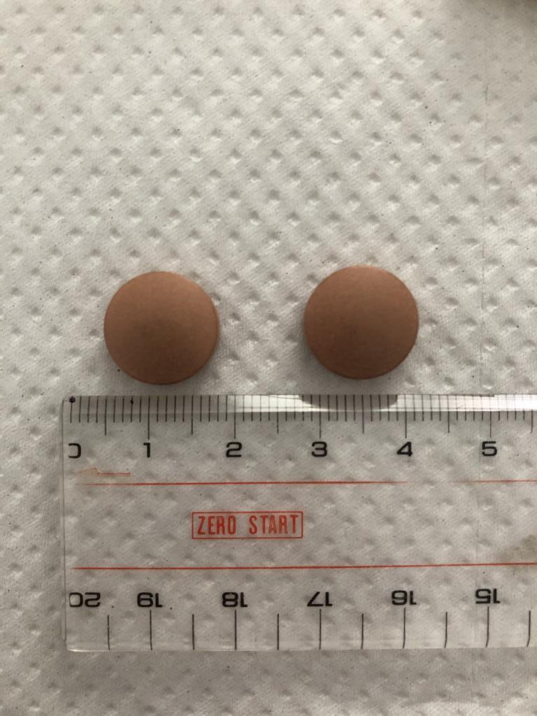 中には茶色のタブレットが入っていまして、大きさは直径約1.2cmと少々大きめとなっています。