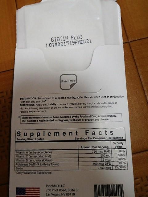 髪のためにビオチンを使い続けていましたが、パッチはやはり高いですね。飲むサプリの方に戻ろうかと考え中ですが、やはりパッチは楽ですね。