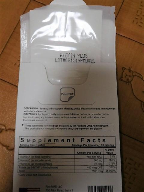 飲むタイプのビオチンが合わず、ミヤリサンと一緒に飲んでもお腹の張りが治まらないため、パッチに切り替えてみました。