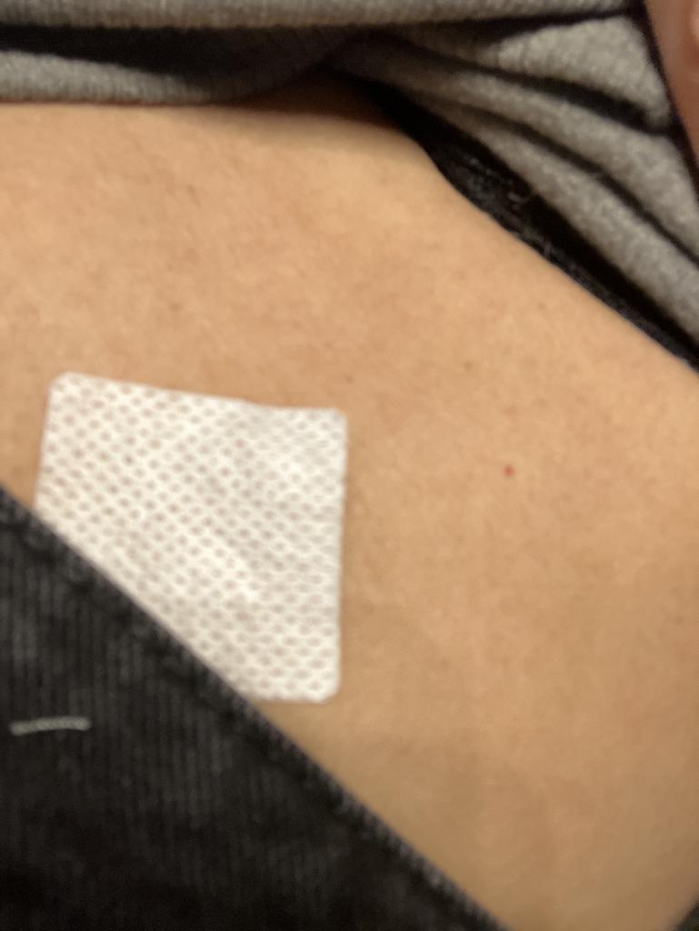 1日目かゆいな、と思い2日目は肩のあたりに貼ったらくっきりパッチの形に腫れ上がり、今はだいぶ治り軽くかさぶたになっています。
