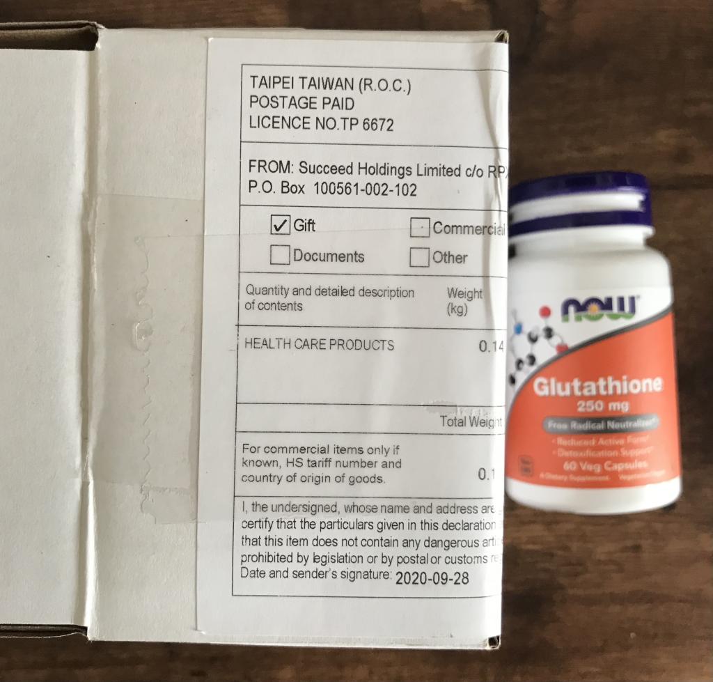 注文後いつもスムーズに届きます。今回はグルタチオンを頼みました。