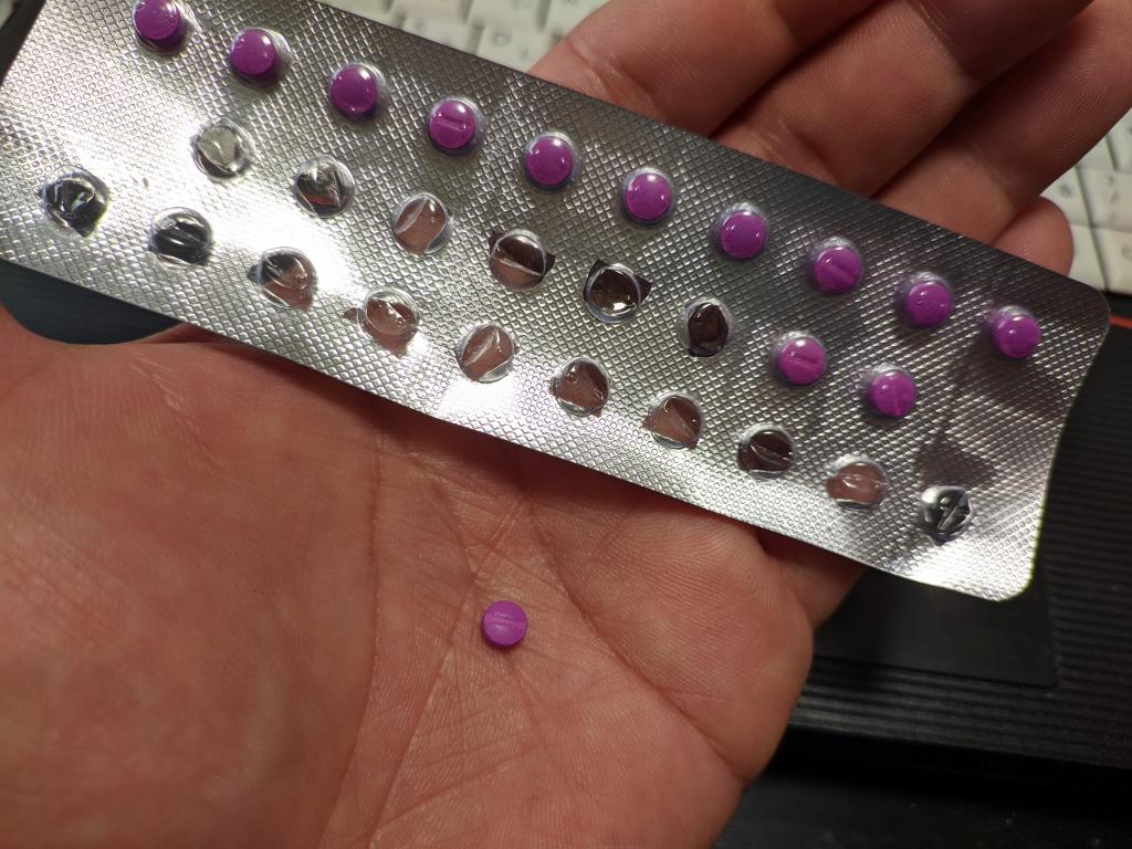 錠剤は鮮やかな紫色をしていて、糖衣がなく小さいです。