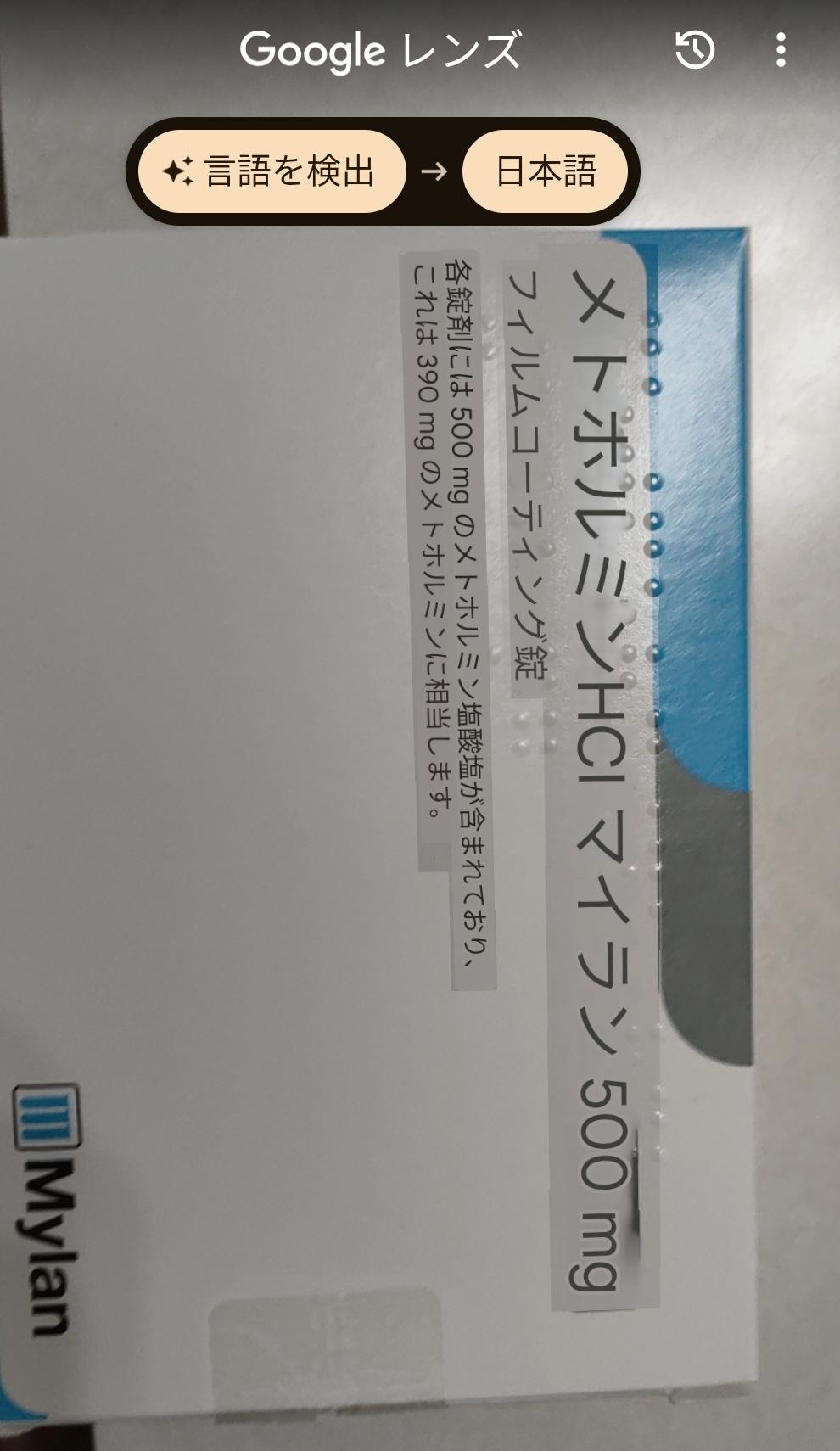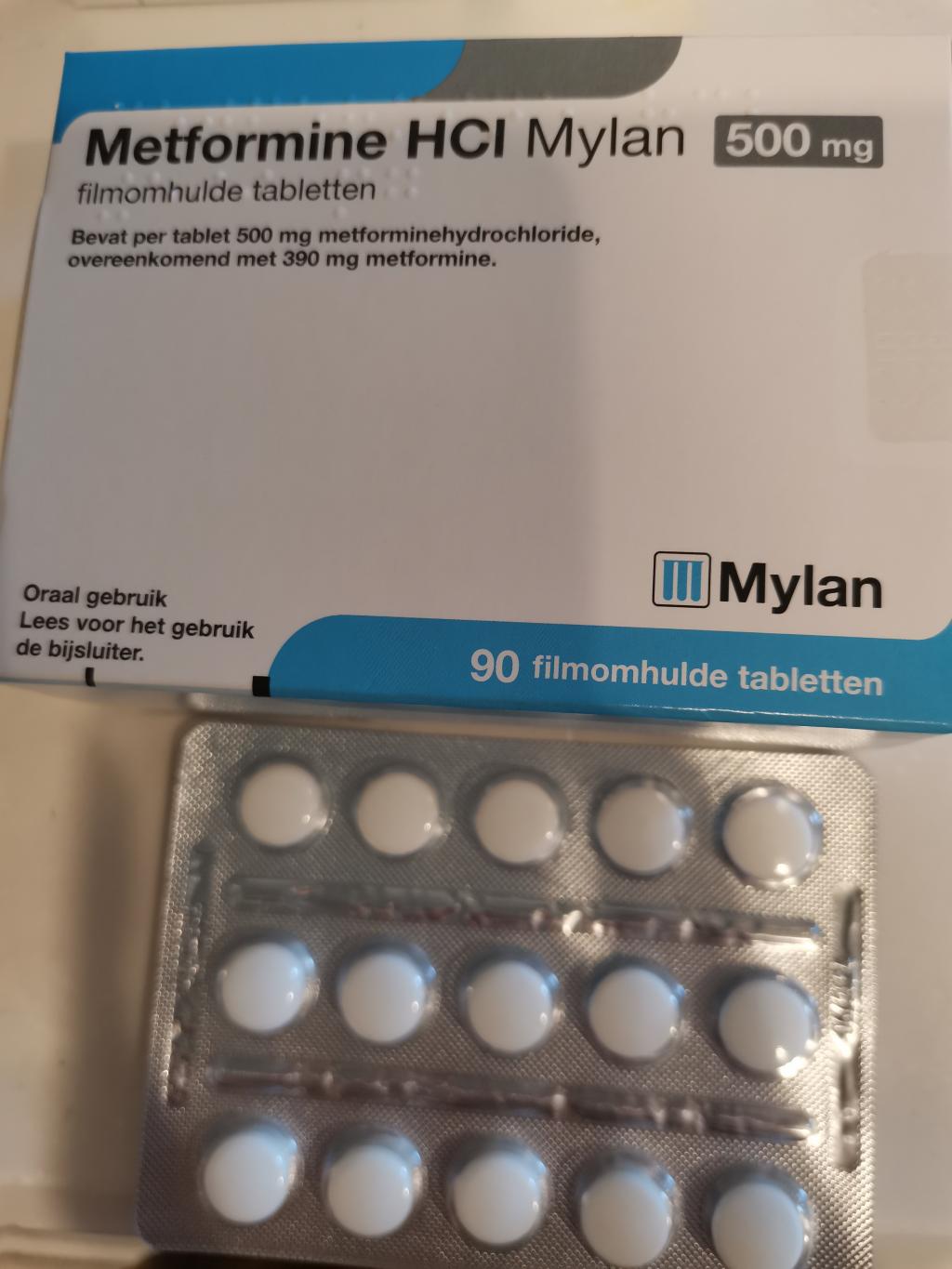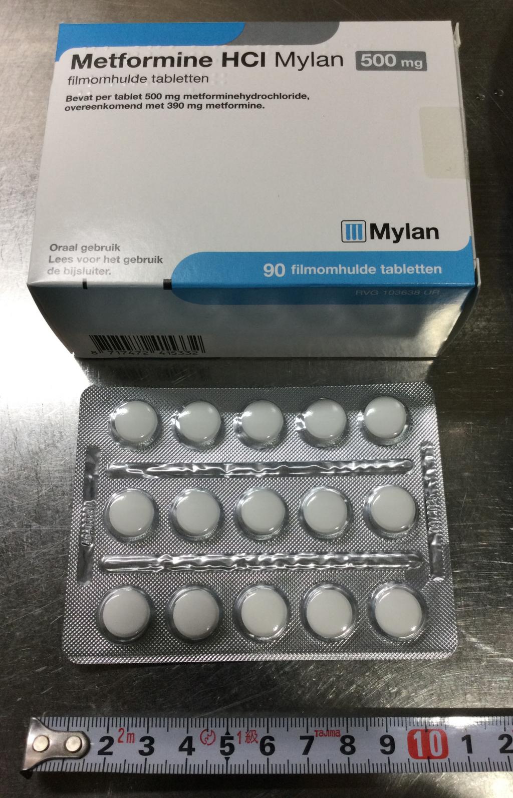普通のメトホルミン錠剤です。効き目は変わりませんが、錠剤に割線がないため、手で半分に割ることはできません。250mg~500mgの調整に割線の入ったタイプが必要な方は、マイランではなく同じメトグルコジェネリックのゾメットがおすすめです。