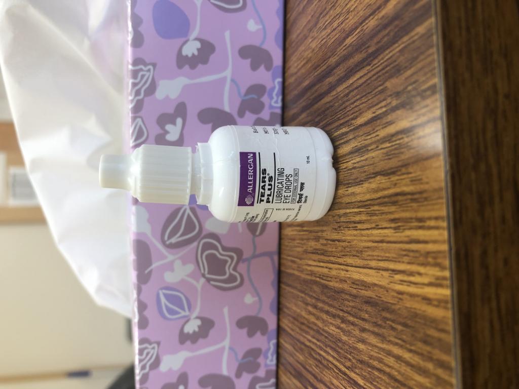 眼科に行っても毎月一回白い眼薬をくれるだけでほとんど効果がないのでこの目薬を購入しました、一番痛いのは寝てる時で夜中にトイレに起きるとき目が開かないぐらい痛くて涙の分泌物が少ないとのことです、枕元に置いて目が覚めるときに使っています、白い薬は日に4回使いますが、この薬は目が痛いときだけで済んでるので安い分だけこちらで満足してます。