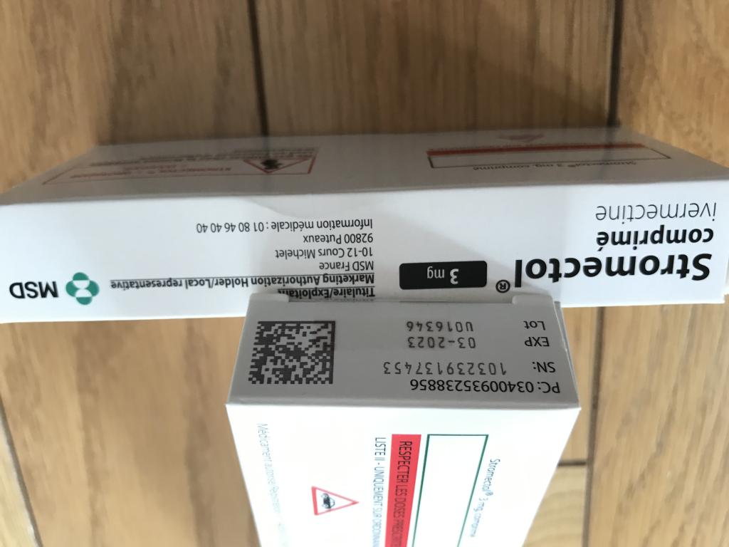 私の元に届いたストロメクトールは台湾から届き、製造会社MSD(オーストラリアとニュージーランドの住所が書かれてあった)、消費期限2022/9とありました。
