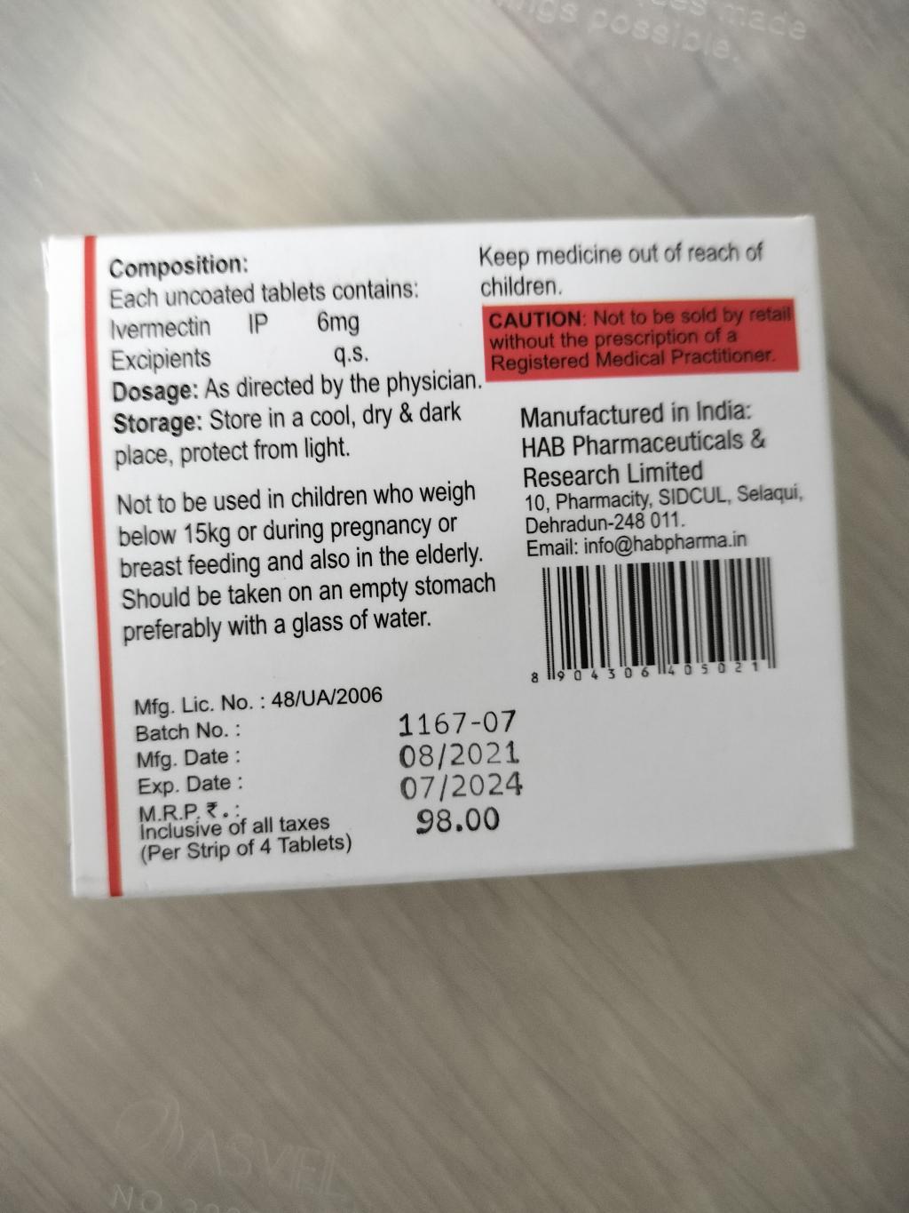 今流行りのイベルメクチンとの事で安心を買うために注文しました。但し良く用法を見ると体重1kg当たり約200μgなので2錠飲んでも60kgの人用なので男性には少し少ないかもしれませんが、かなりお安い価格なので買い増しします。