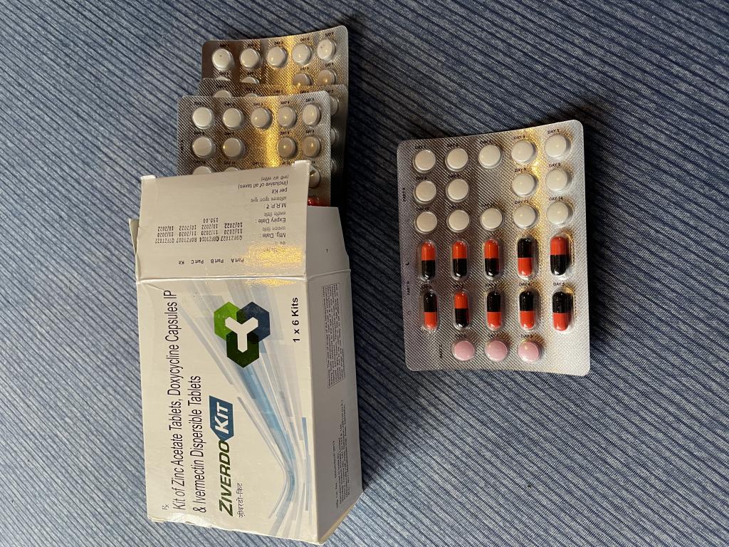 イベルメクチン3錠、亜鉛14錠、抗生剤が朝晩で5日分。covid19用の薬と書いてあるものです。初めて見ました。