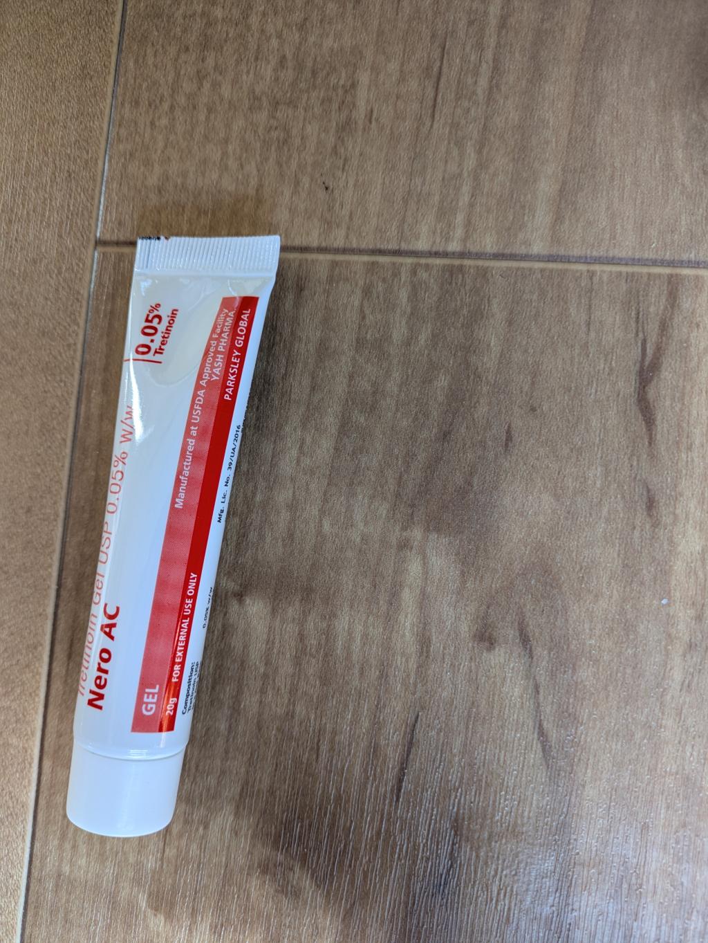 透明なジェルで使いやすいです。効果は、使用してから一週間後に薄っすら皮むけがありましたが、それっきり剝けません。 一カ月で1本なくなる感じで使いましたがシミは変わらず顕在。 0.05%だと弱いのか?顔全体に塗っても問題なく、、うーん 他の方が書かれているように、他のメーカーより弱い感じかも、、 リピはしないです。