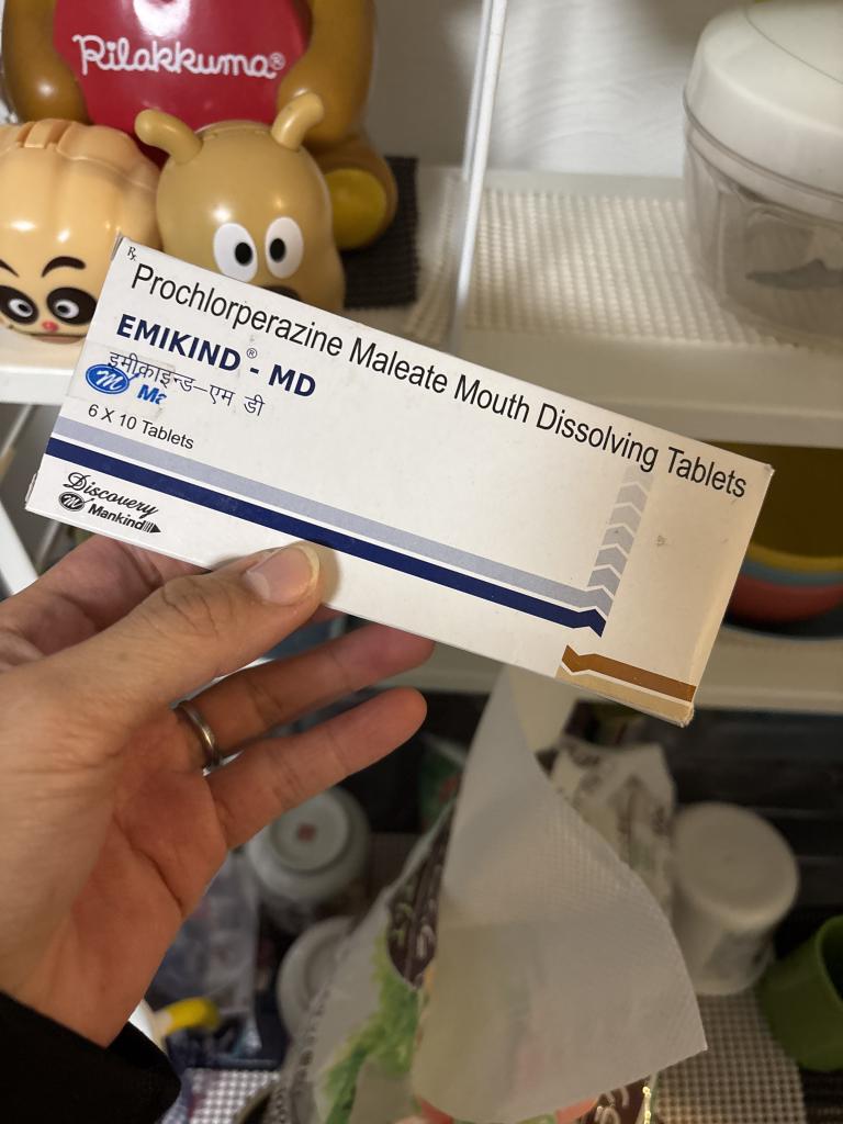 エミカインドMD5mg(一般名:プロクロルペラジンマレイン酸塩)は、ノバミン錠5mgと同成分で、中枢神経に働きかけ、強い吐き気や嘔吐を鎮める、統合失調症の治療にも使われる安定剤だと言われていますが、私の場合は眠気を起こすために使ったから、効かなかったです。