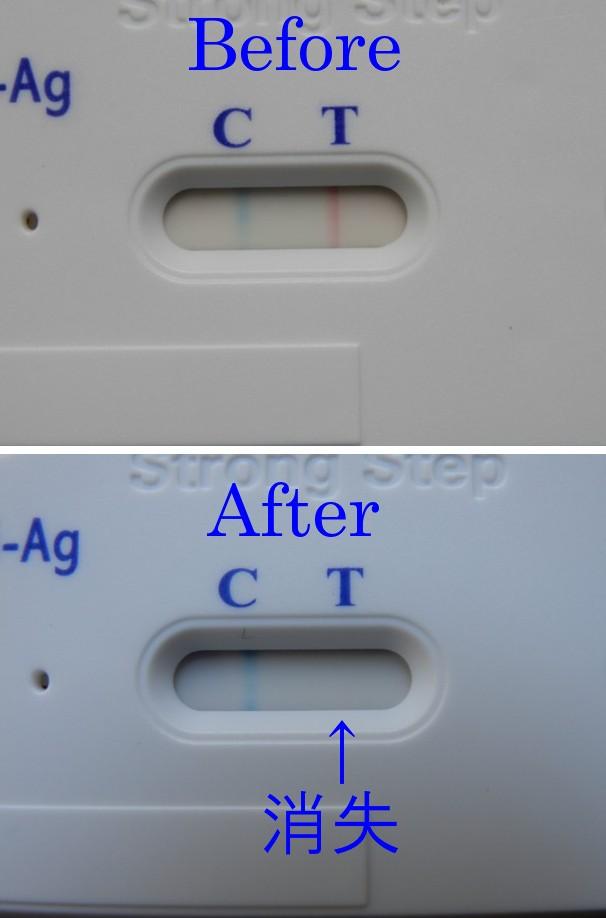 まずは検査キットで検査をすると、しっかりと陽性反応が出ました。検査はとても簡単で、短時間でできました。