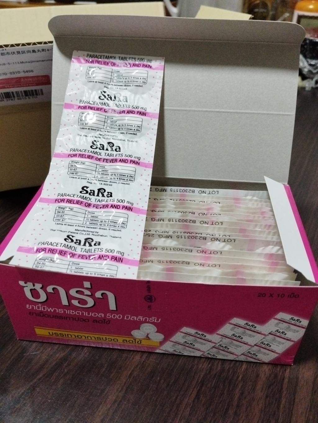 片頭痛もちの私としては、アセトアミノフェンのお薬は必携です。しかし、最近、ずいぶんとお値段が高騰しています。その中で効き目は同じのサラ500mgはお財布に優しいです。またリピートするつもりです。