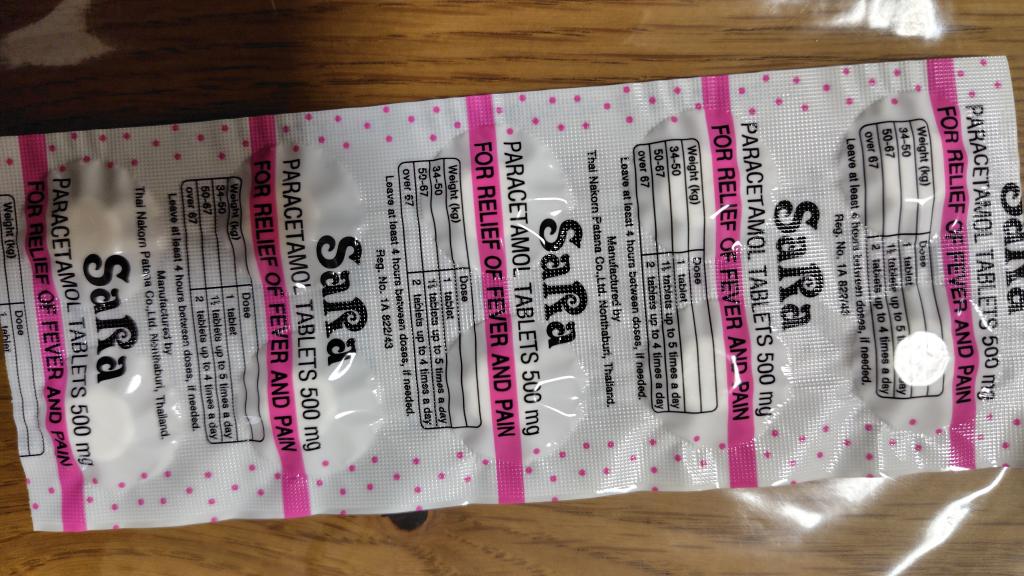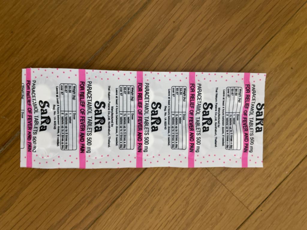 カロナール500は、日本だと3割負担で一錠3円くらいで手にできますが、受診してもたくさん出して貰えないので、個人輸入しました。