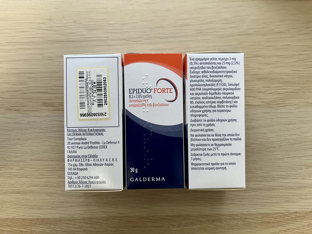 もともとディフェリンゲルを使用していまして、より効果が高いとされるこちらのエピデュオフォルテを知りさっそく購入。ディフェリンゲルはぴったり1ヶ月の間使用しましたが、アダパレン0.1%のディフェリンゲルでも1ヶ月使用して明らかに新しいニキビができなくなって驚いていました。アダパレン0.3%と過酸化ベンゾイル2.5%のエピデュオフォルテでは年単位の長期使用によってニキビ跡の改善が見込めるとのことで、そちらの効果に期待してディフェリンゲルから乗り換えました。