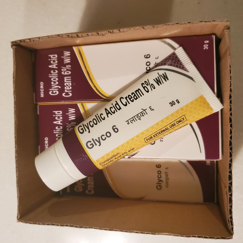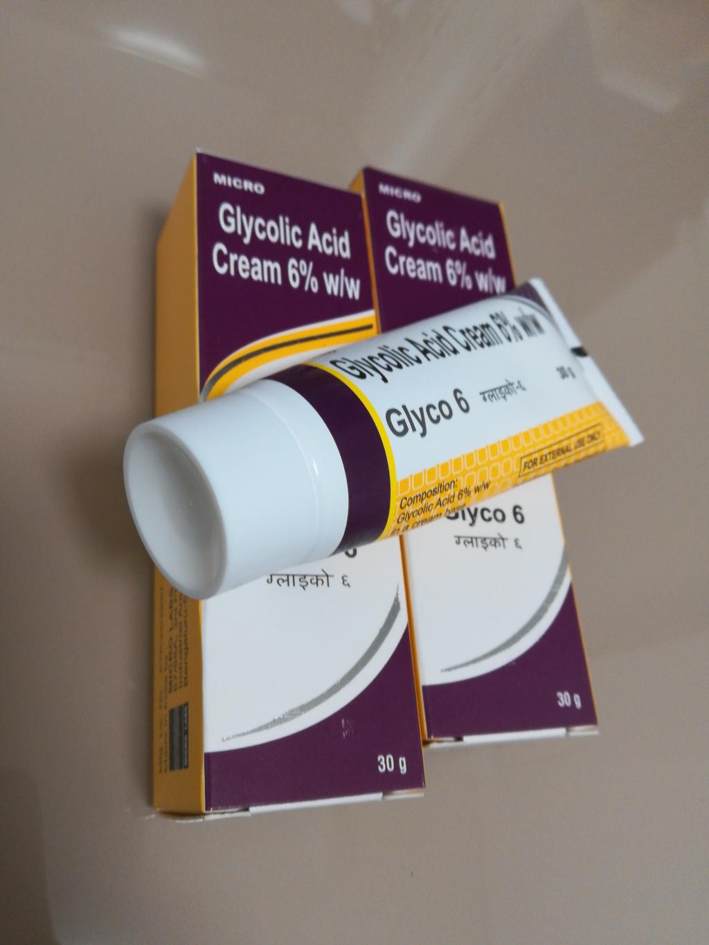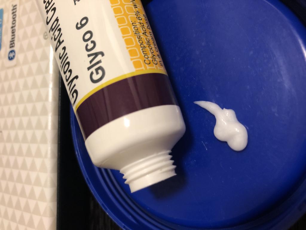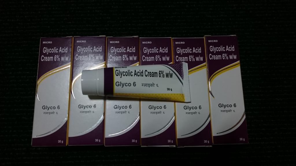 数個あるシミには夜のみトレチノイン0.025%とユークロマ4%をシミのみに使用しているのでグライコでのシミ効果はわかりませんが、肌に潤いが出たのが使用始めてからすぐに実感出来ました。