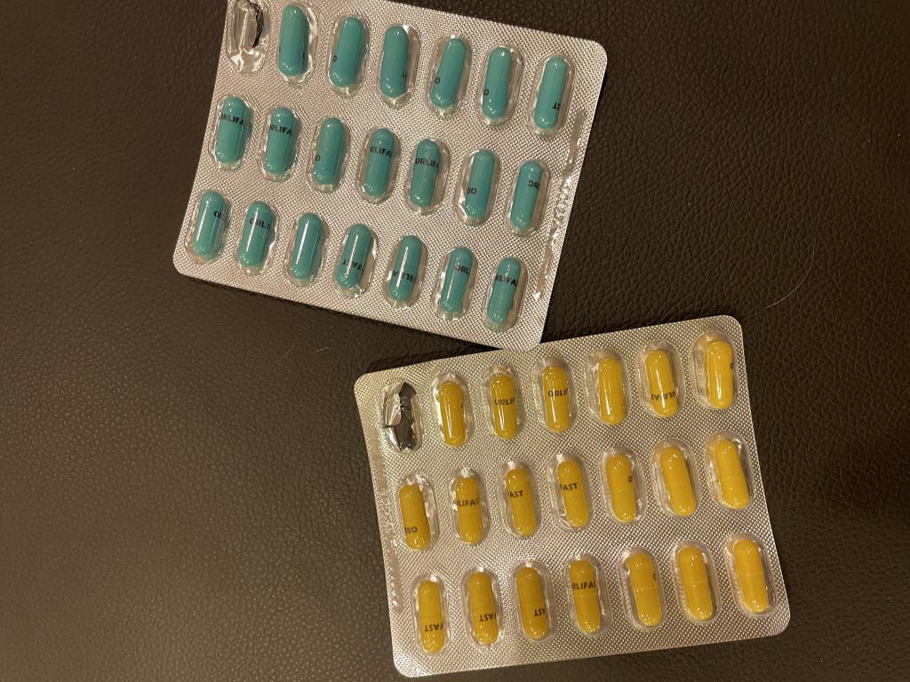 いつも黄色の方を飲んでましたが今回青120ミリグラムにしてみました。同じ食事をとっても油が出る量が違うときがあるので飲むタイミング色々変えて試してます。