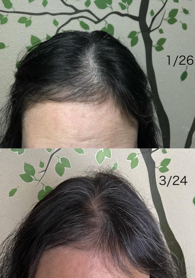 額に産毛が生えてきてとてもうれしいです。ただ、続けていないとやはり抜け毛が増えるのを感じるので、ずっと続けていきたいと思います。